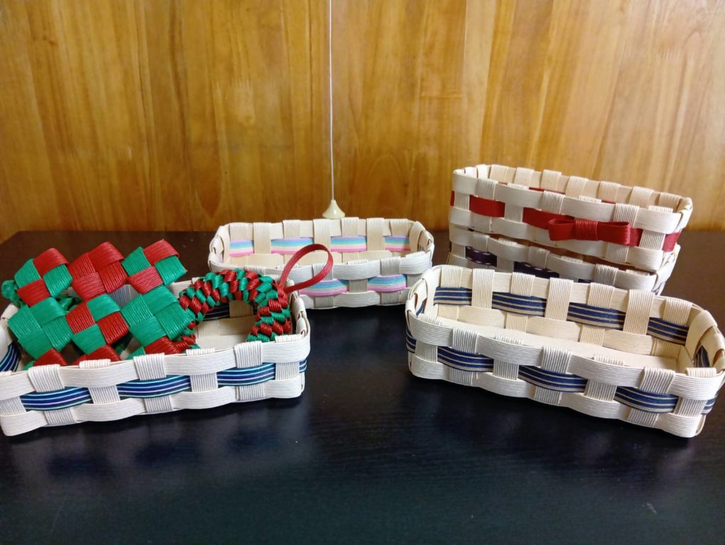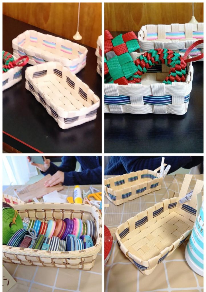 2025.11/26(水)13時から千葉県君津市人見の廣全寺にてワークショップを開催しました。カトラリーケースづくりを行いました。眼鏡やペンが入るサイズの平置きカゴです。お好きな色のカラーバンドをアクセントに仕上げました。